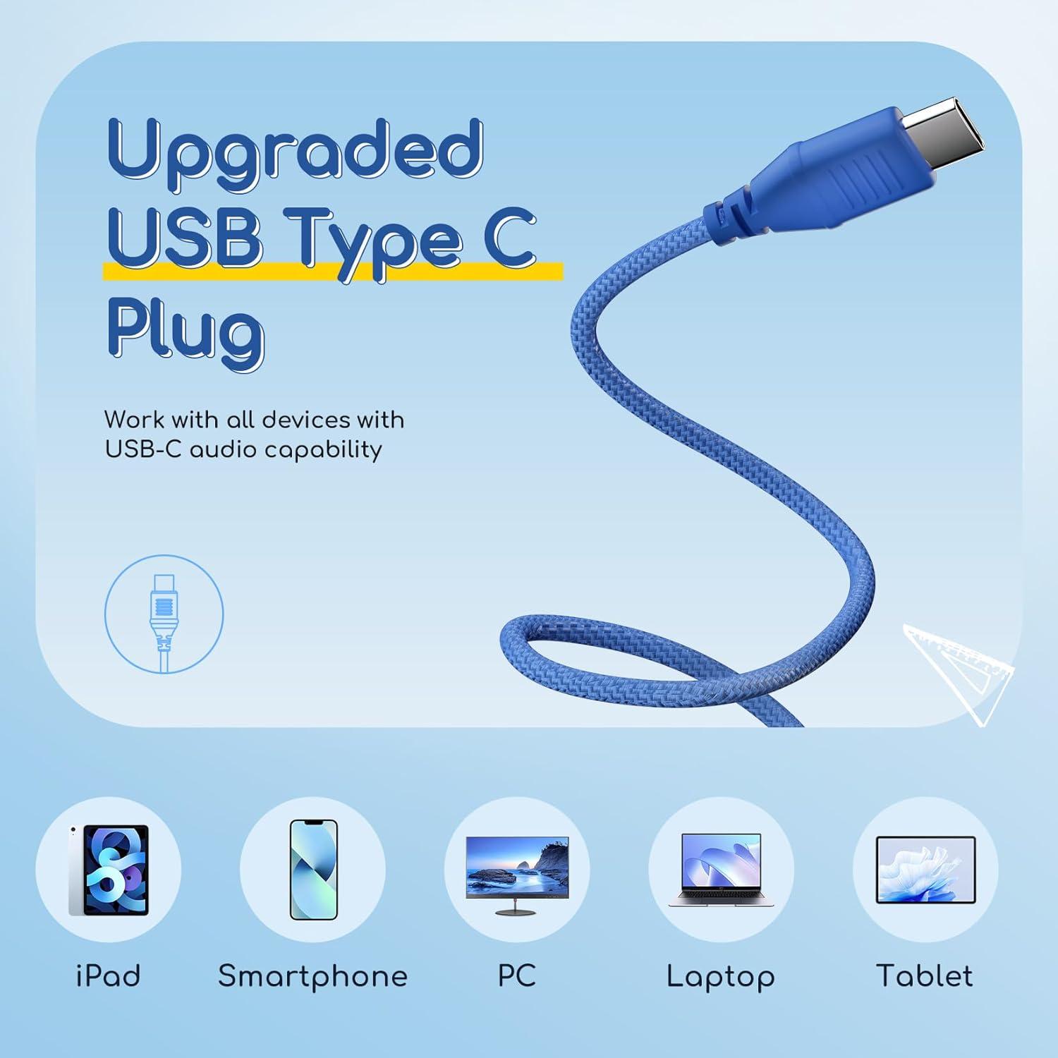 HD Microphones & Sharing Audio. With the microphone on the audio cable, it is convenient for kids' online study and communication. And it's easy to play/pause audio, answer or end calls, and skip tracks via in-line control. Besides, the 3.5mm sharing jack allows kids to share audio with friends or families with no need for a splitter.