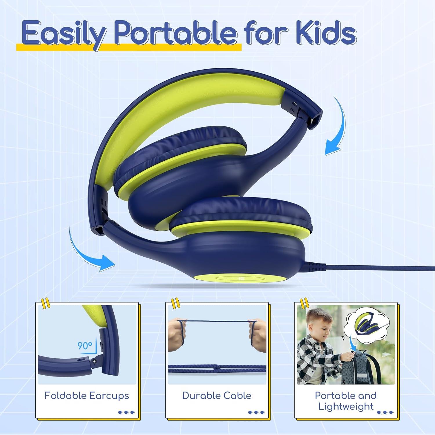 Comfy Fit & Foldable Design. The ultra-soft ear caps combined with adjustable sliders allow getting the perfect and comfortable fit for your head shape. And the wired headphones' foldable design makes it easy to carry or store, perfect for traveling or school. Accompany your child anytime, anywhere.