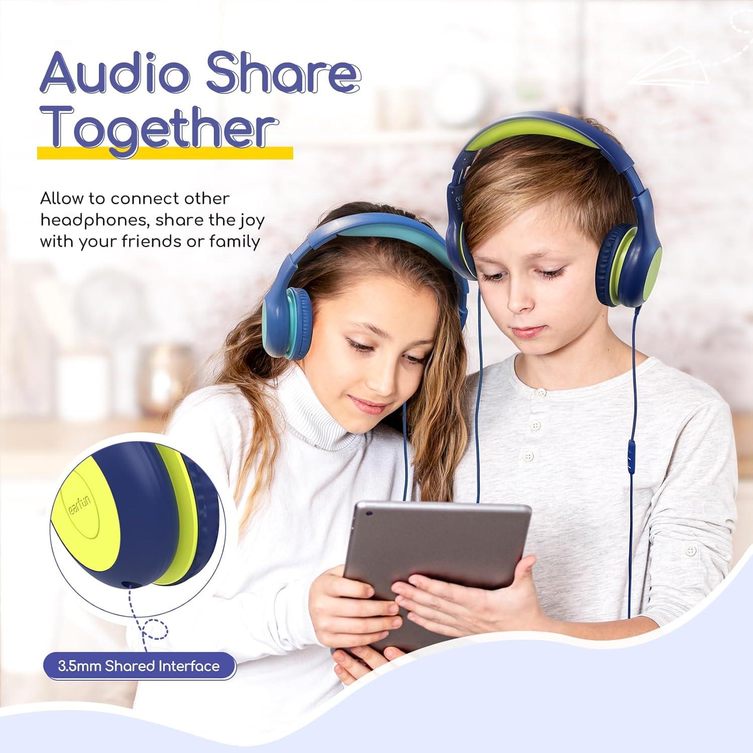 imageEarFun Kids Headphones Wired with Microphone 8594dB Volume Limit Headphones for Kids Portable Wired Headphone with Shareport Stereo Sound Foldable Headset for SchoolTabletiPadKindle Black RedBlue Green