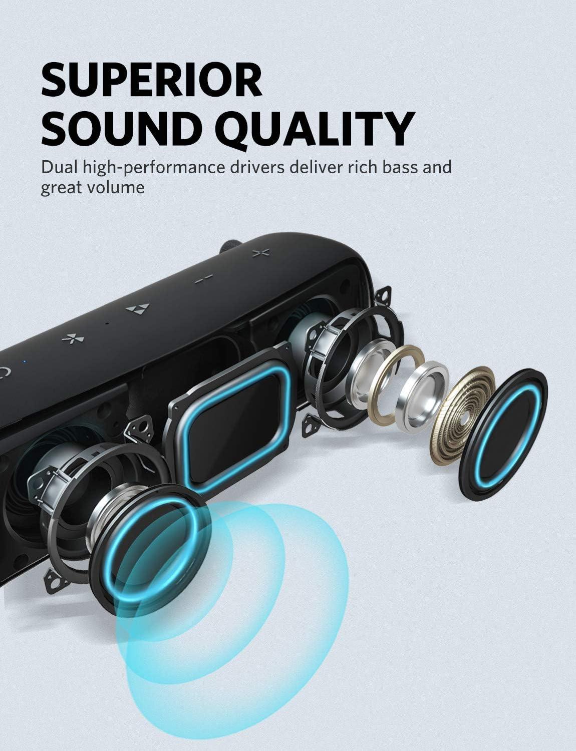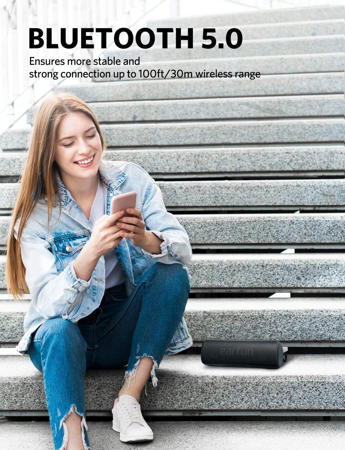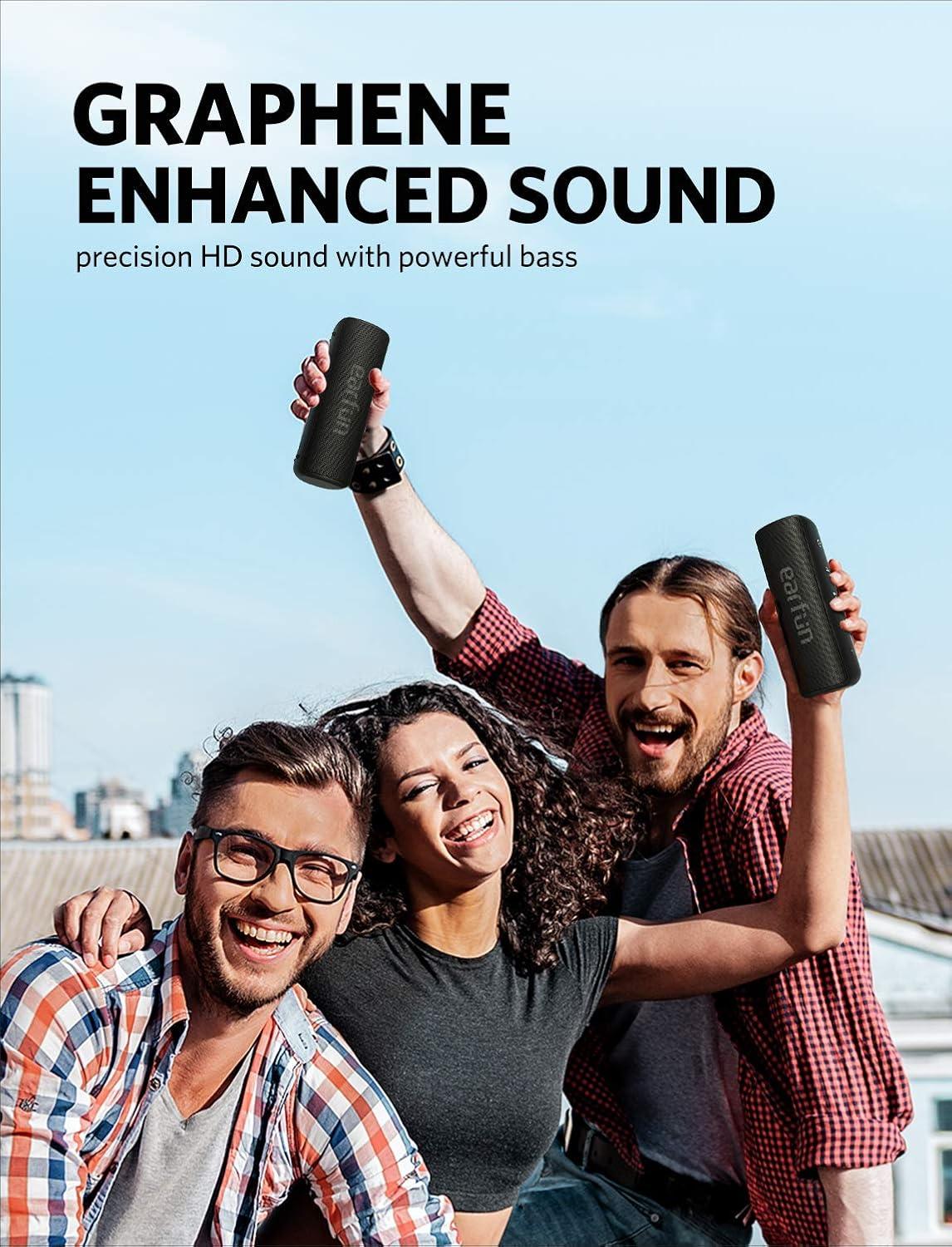 Enhanced with dual stereo drivers and advanced DSP chips, EarFun Go bluetooth speaker delivers true stunning sound with enhanced bass without distortion at any volume. With seamless all-around sound, you can get a fully immersive audio experience which covers every square-inch of any space.