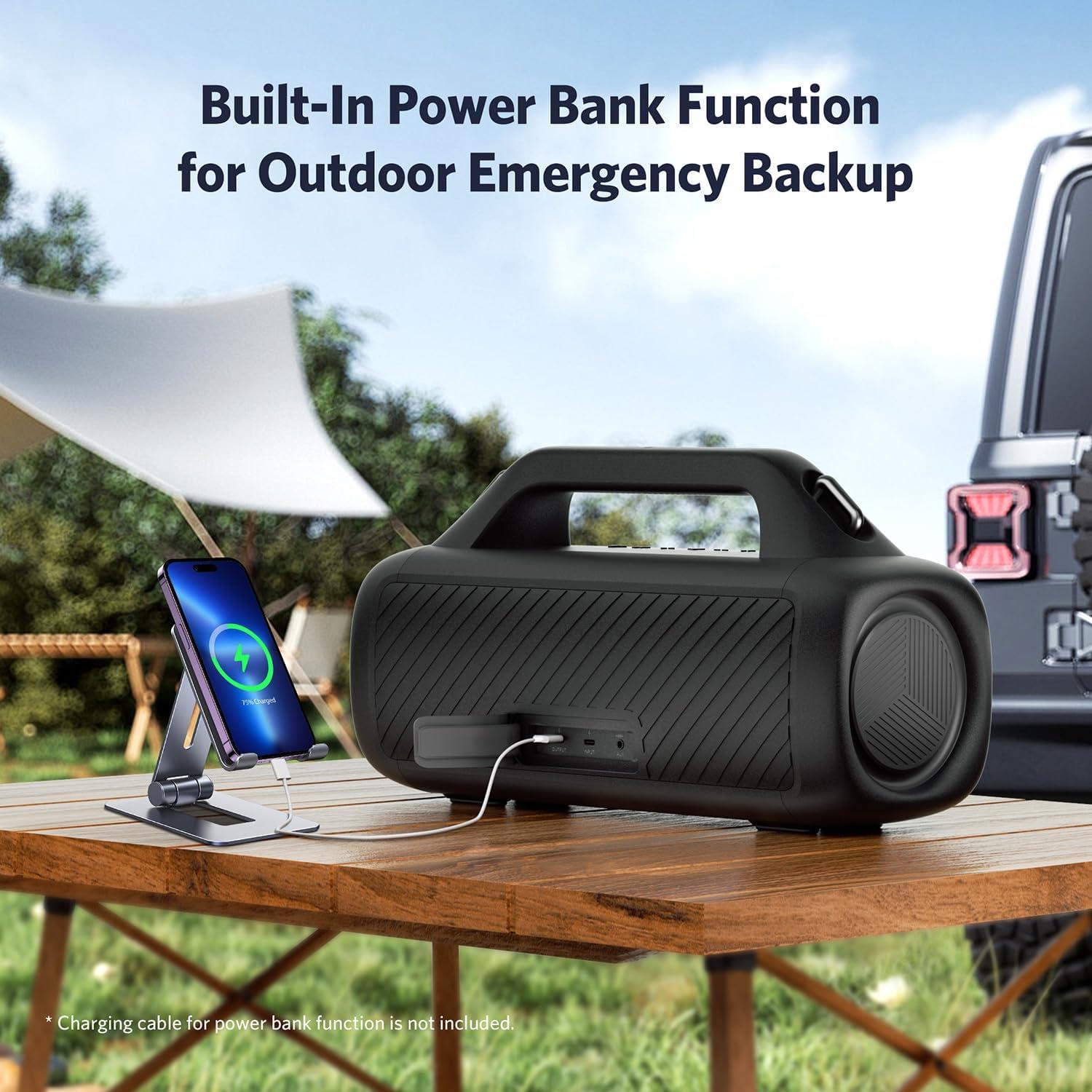 80W Stereo Sound: Equipped with dual 30W drivers, two tweeters, and dual passive radiators, combined with JumboBass technology, the portable Bluetooth speaker delivers a powerful full-range sound, with punchy bass, and sparkly treble. Feel the sound from across the room.